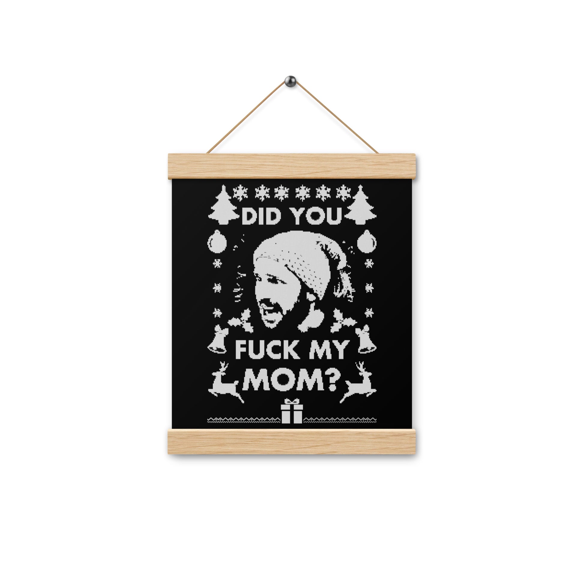 Bring holiday humor to your walls with the Did You Santa? hanging poster! This high-quality print is secured by natural wood hangers with magnetic closures, making it a stylish and hilarious holiday decoration.